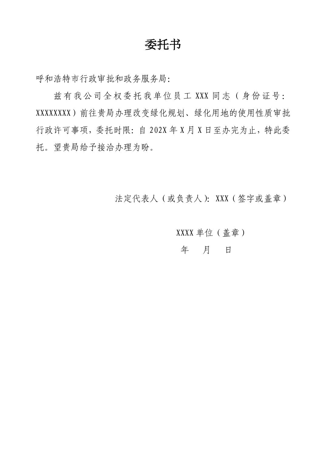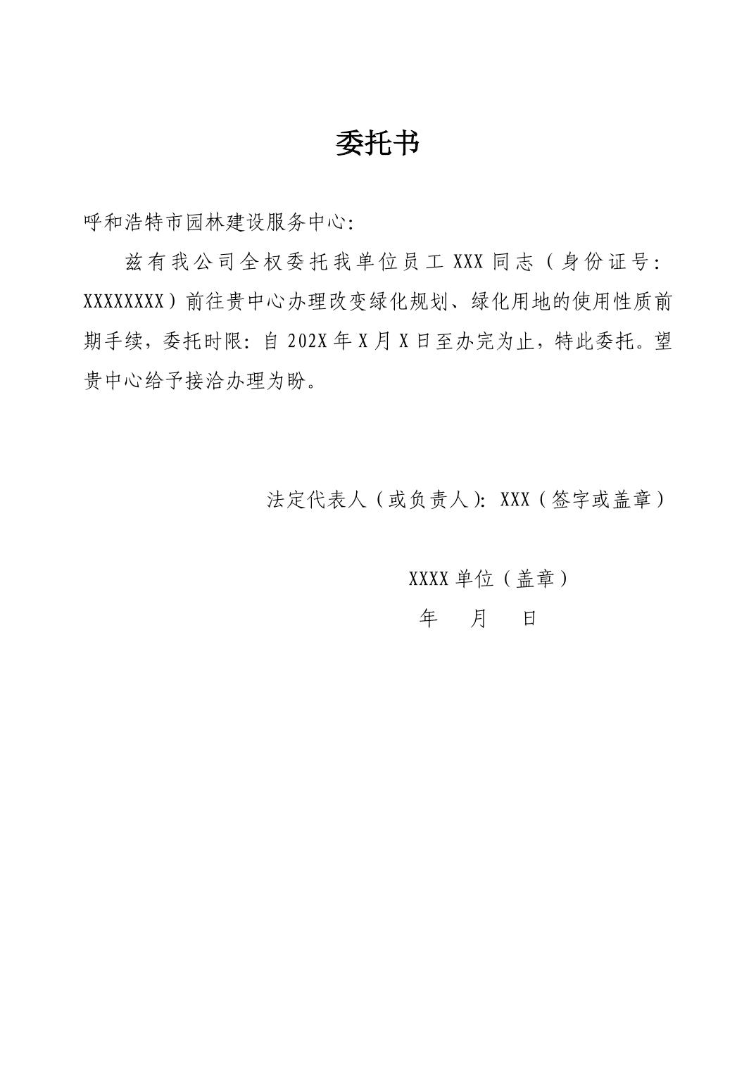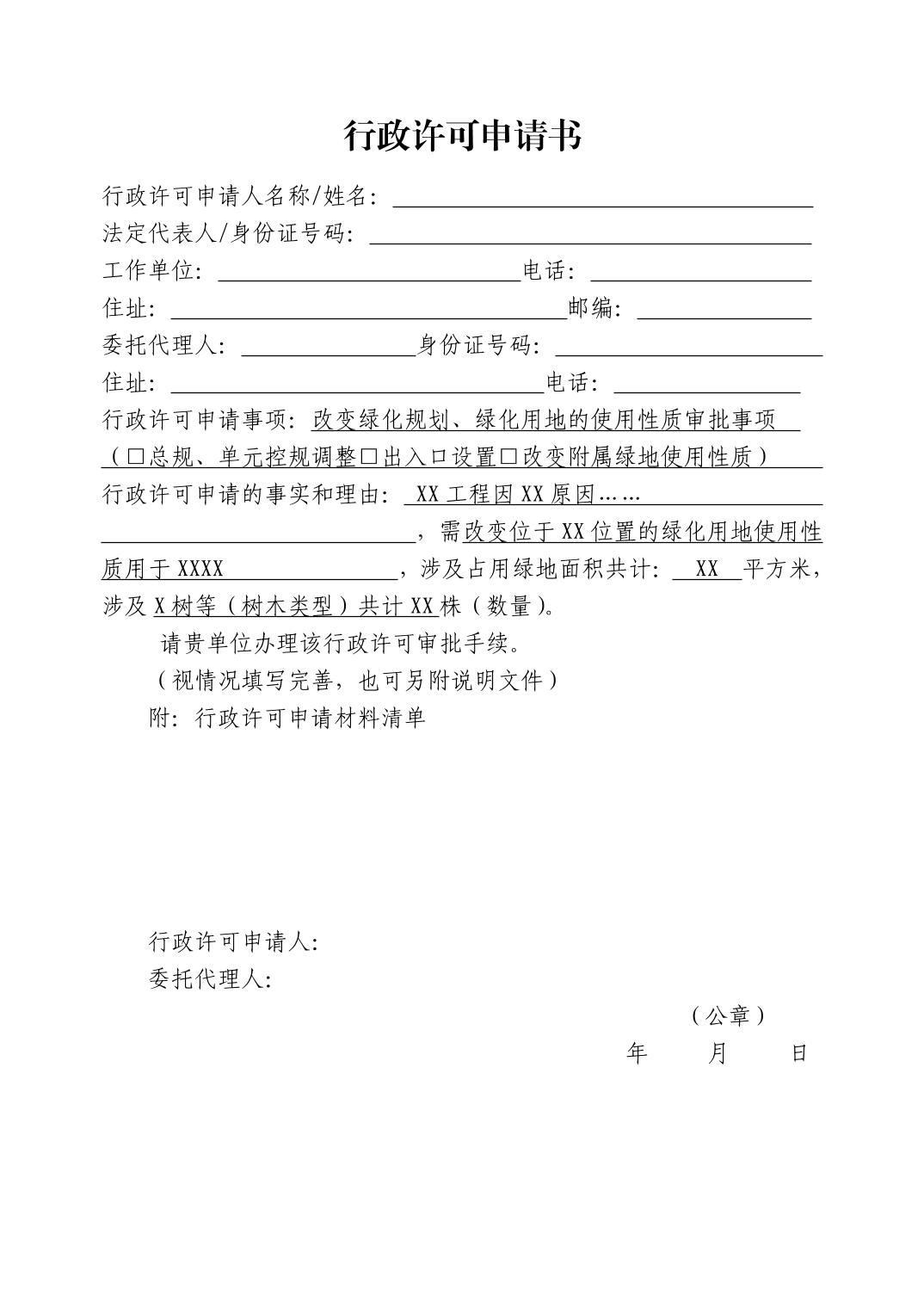 改变绿化规划、绿化用地的使用性质审批材料模板