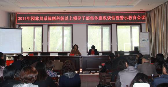 为切实加强对领导干部的教育和监督,增强领导干部廉洁自律和廉洁从政意识,提高拒腐防变能力,筑牢思想道德防线,践行党的群众路线教育实践活动,4月8日上午,呼市园林局纪委召开了系统副科级以上领导干部集体廉政谈话暨警示教育会议。领导班子成员和系统70多名副科级以上干部参加了会议。