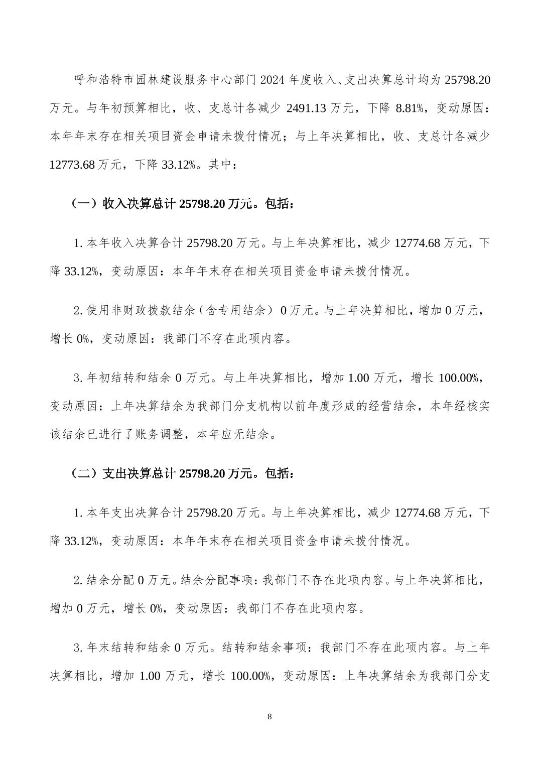 内蒙古自治区呼和浩特市园林建设服务中心(本级) 2020年度决算公开报告