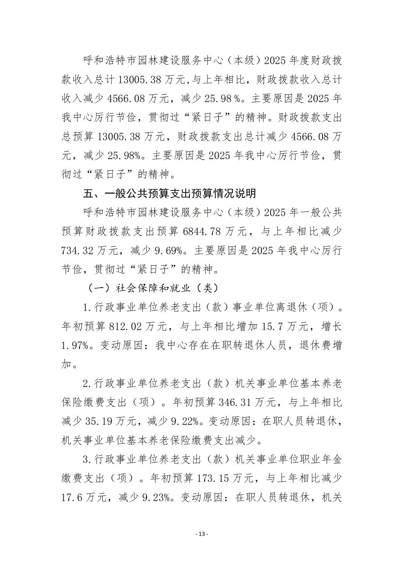 呼和浩特市2025年度呼和浩特市园林建设服务中心本级(单位)预算公开报告