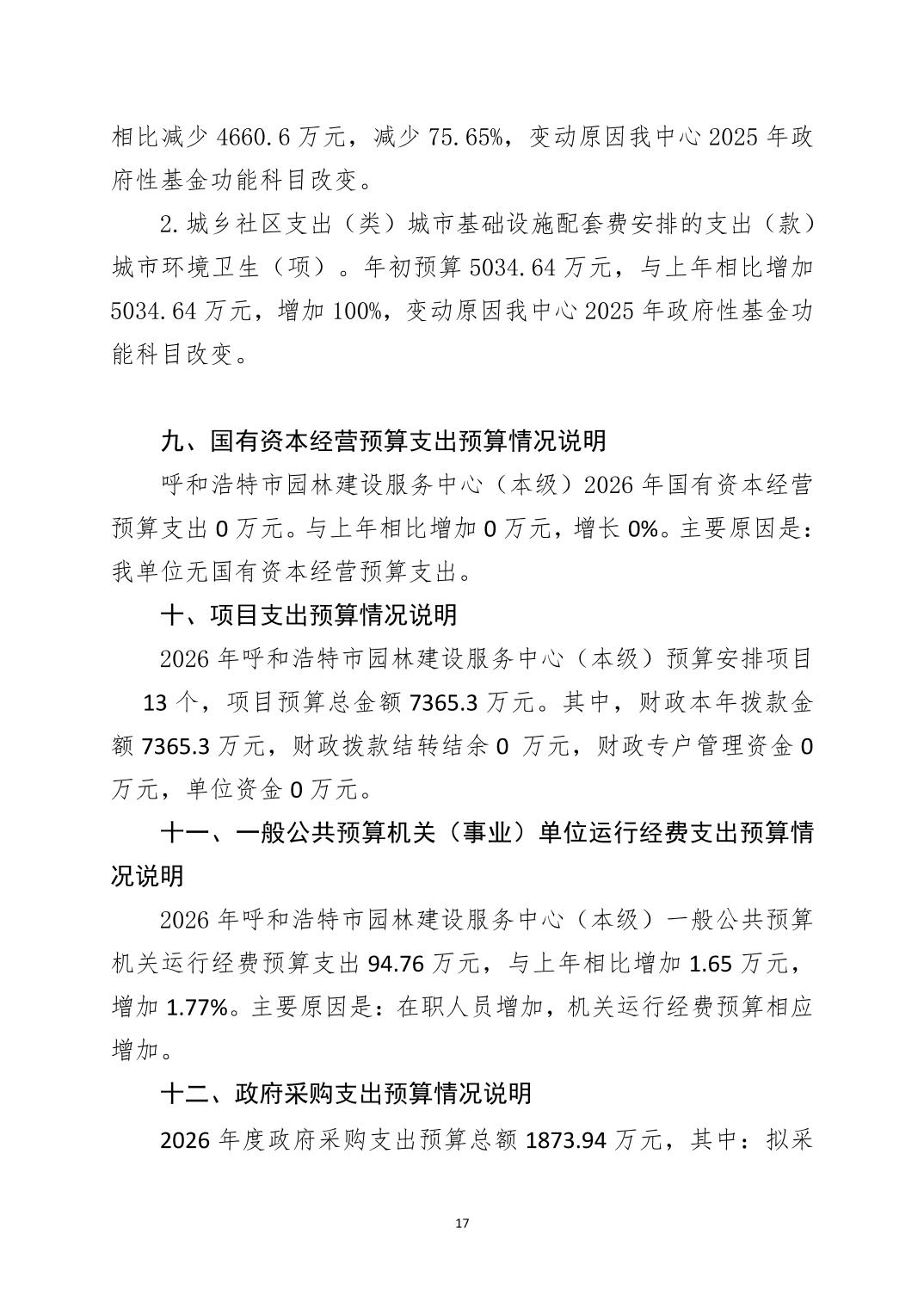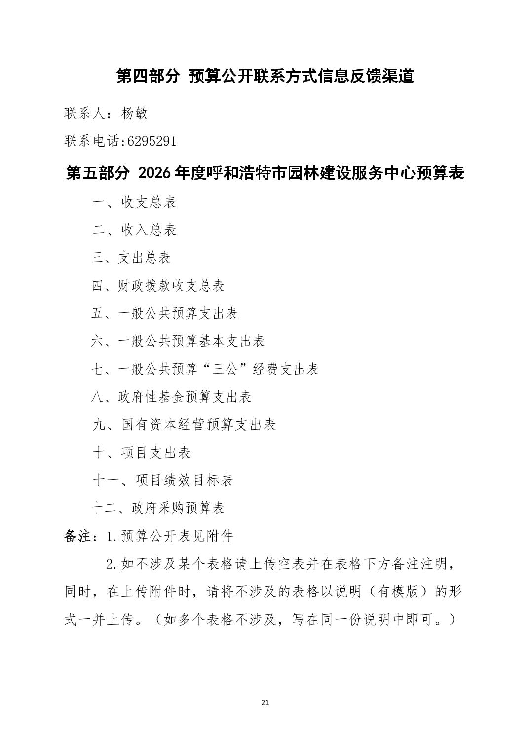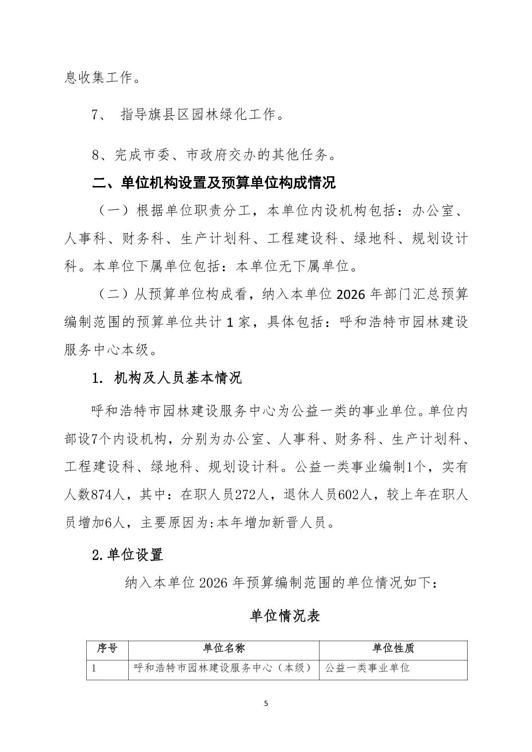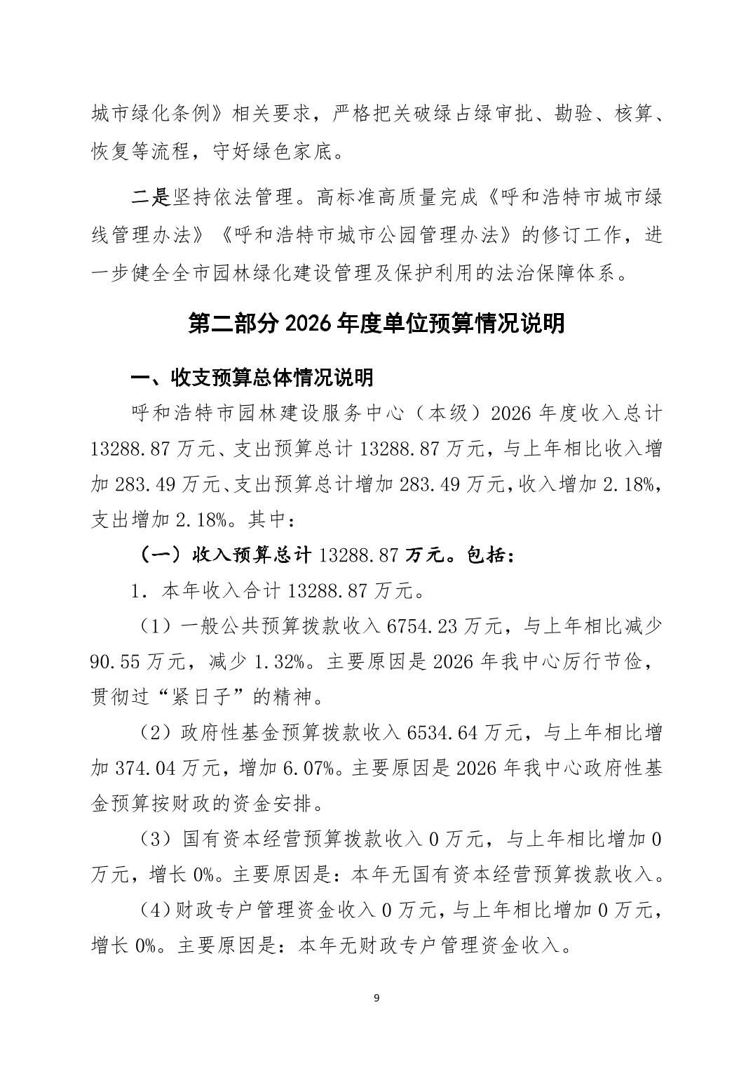 呼和浩特市2026年度呼和浩特市园林建设服务中心部门预算公开报告