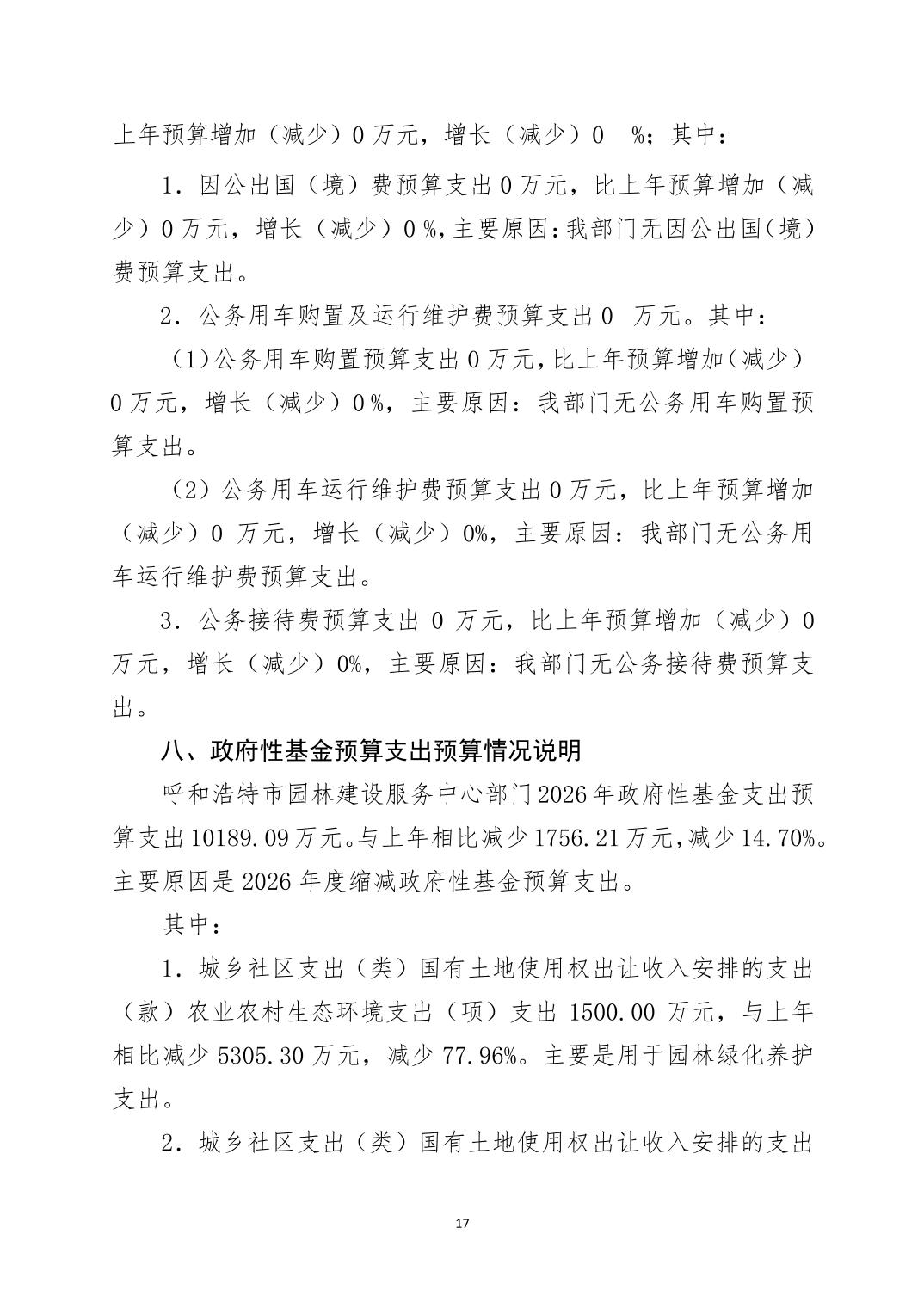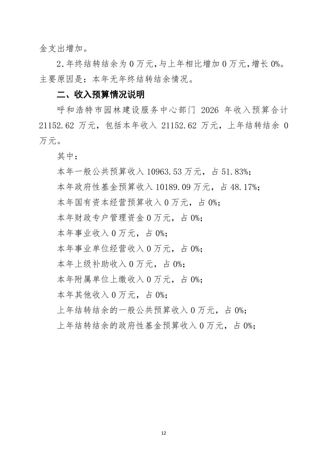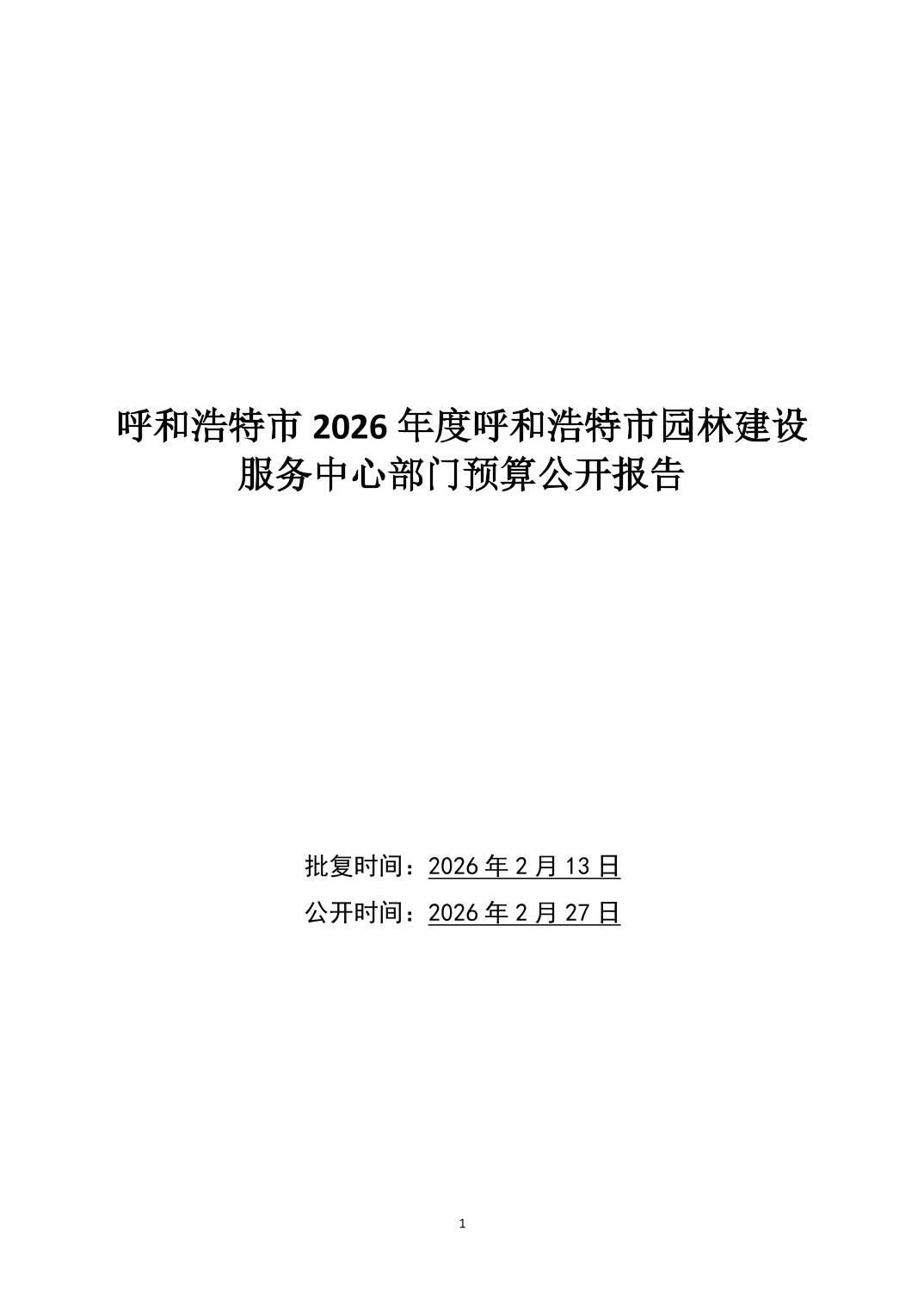 呼和浩特市2026年度呼和浩特市园林建设服务中心部门预算公开报告