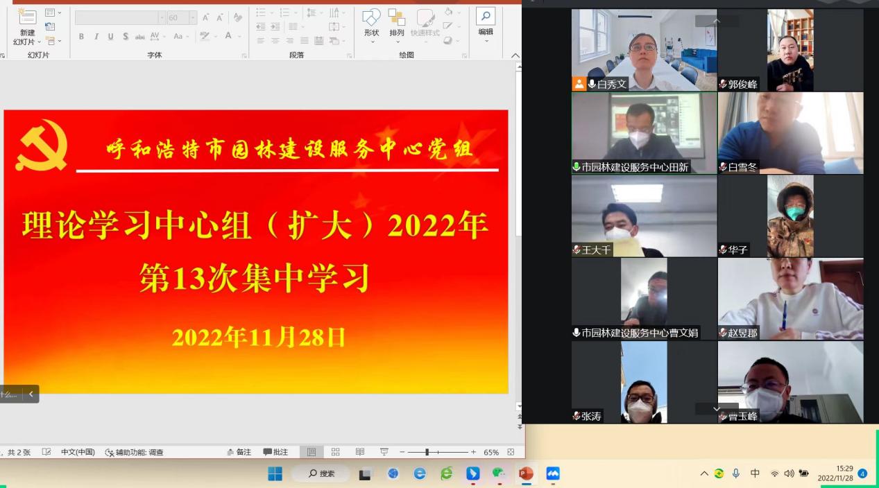 按照市委以及市直机关工委统一学习安排,结合中心工作实际,11月28日,市园林建设服务中心以视频会议的形式召开党组理论学习中心组(扩大)第13次集中学习,学习《习近平关于社会主义精神文明建设论述摘编》相关内容。市园林建设服务中心党组书记、主任田新同志主持会议,中心党组成员、机关各科室负责人、所属单位和分支机构负责人参加了会议。