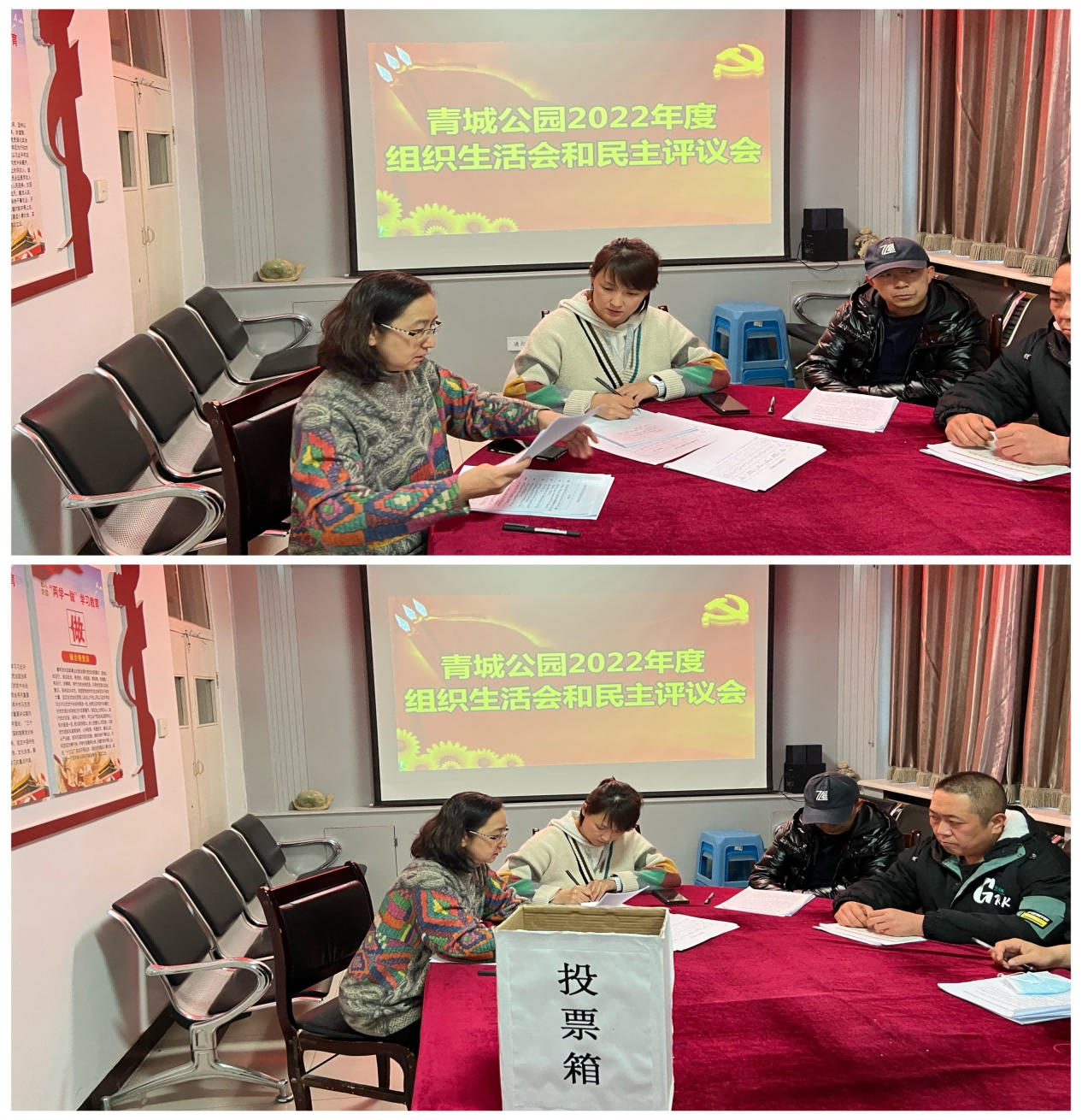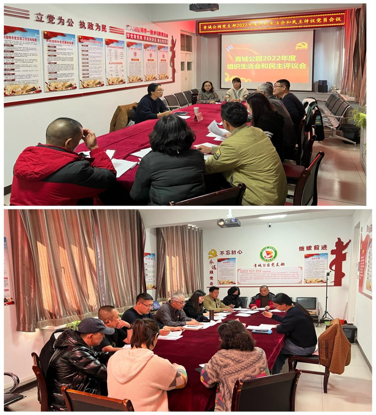 2月15日下午,呼和浩特市青城公园党支部组织召开2022年度组织生活会和民主评议党员,中心党组成员、副主任曹文娟同志到会指导,会议由党支部书记、主任吴晓东同志主持,青城公园党支部全体党员参会。