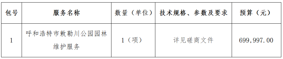 内蒙古万和工程项目管理有限责任公司受呼和浩特市敕勒川公园委托,采用竞争性磋商方式组织采购呼和浩特市敕勒川公园园林维护服务项目。欢迎符合资格条件的供应商前来参加。