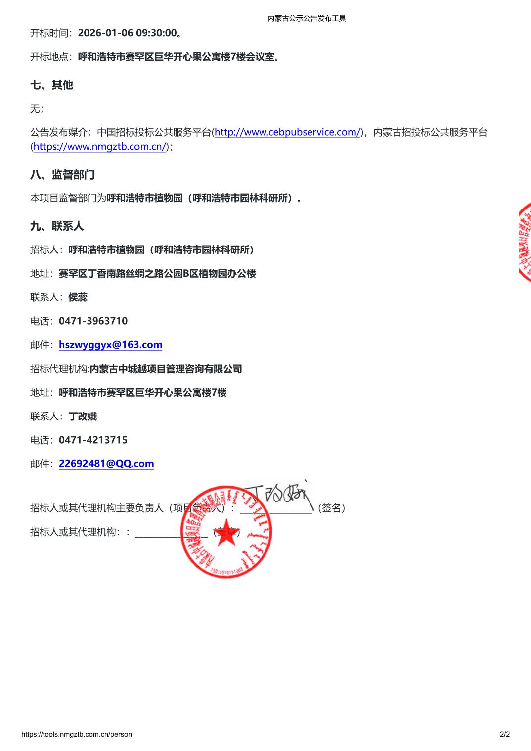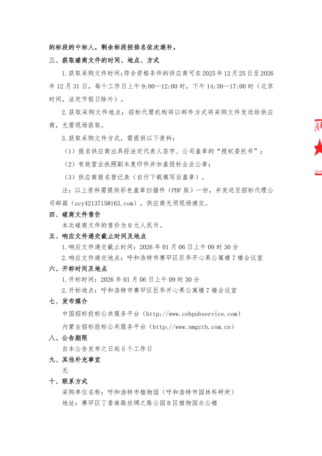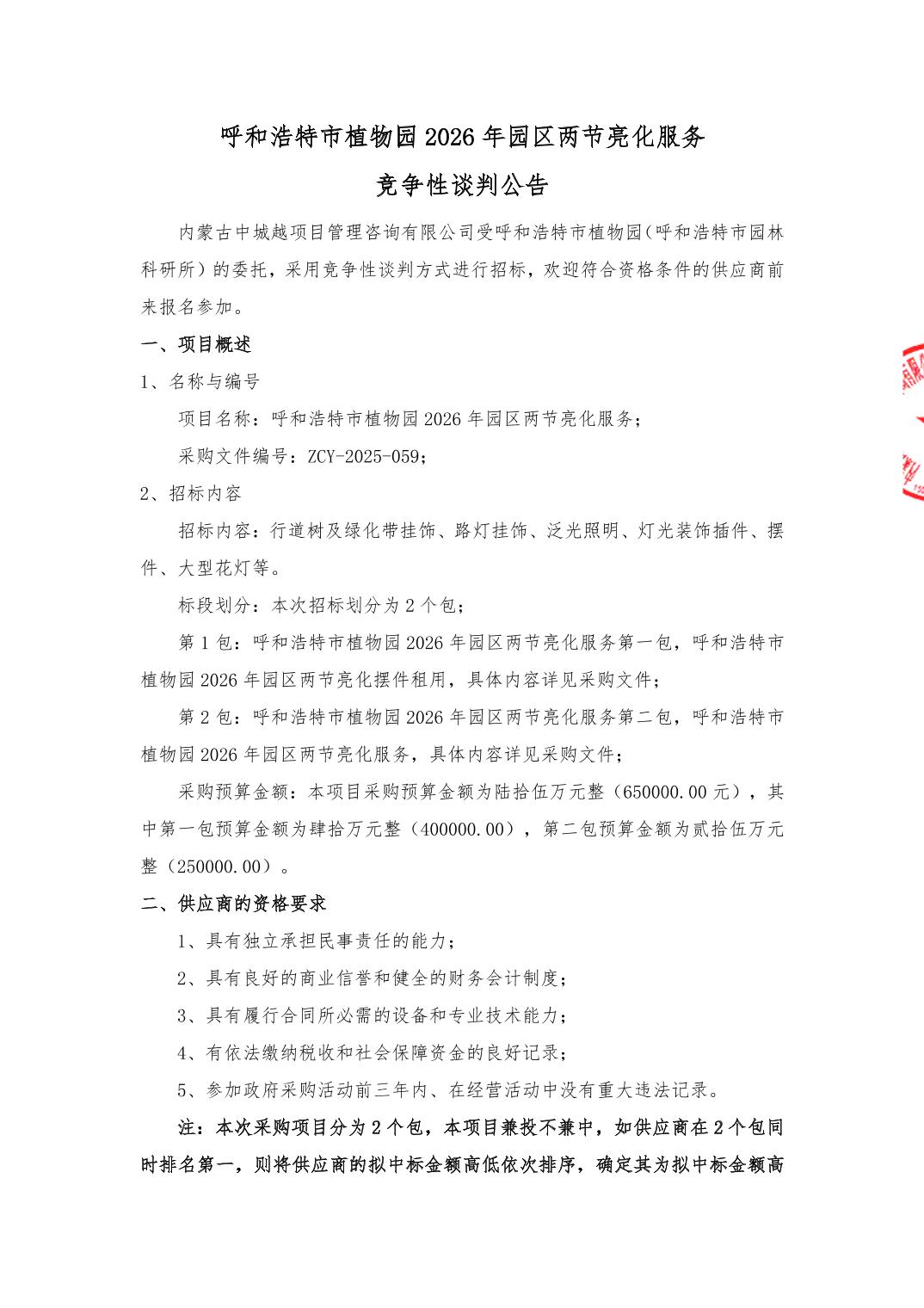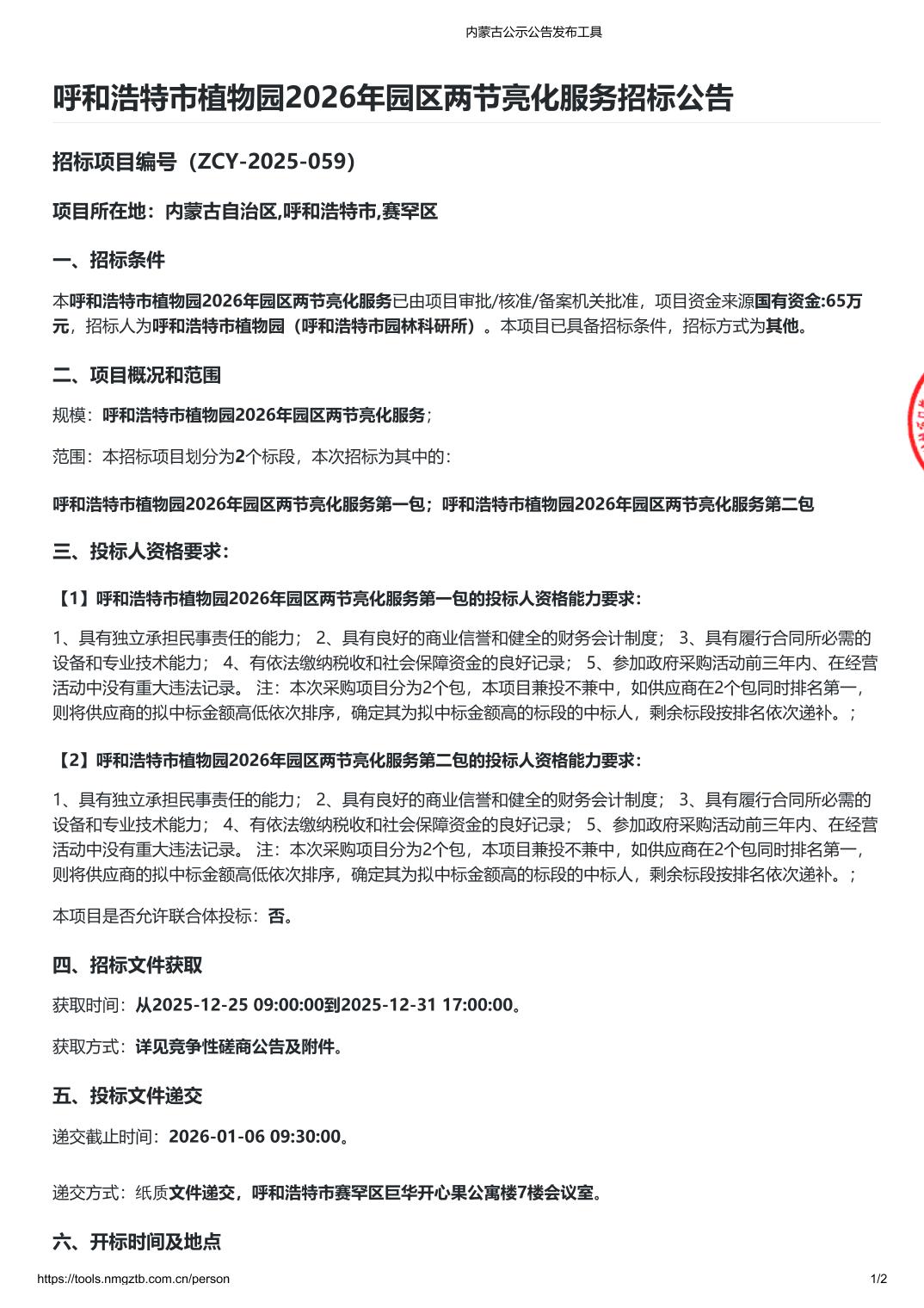 呼和浩特市植物园2026年园区两节亮化服务招标公告
