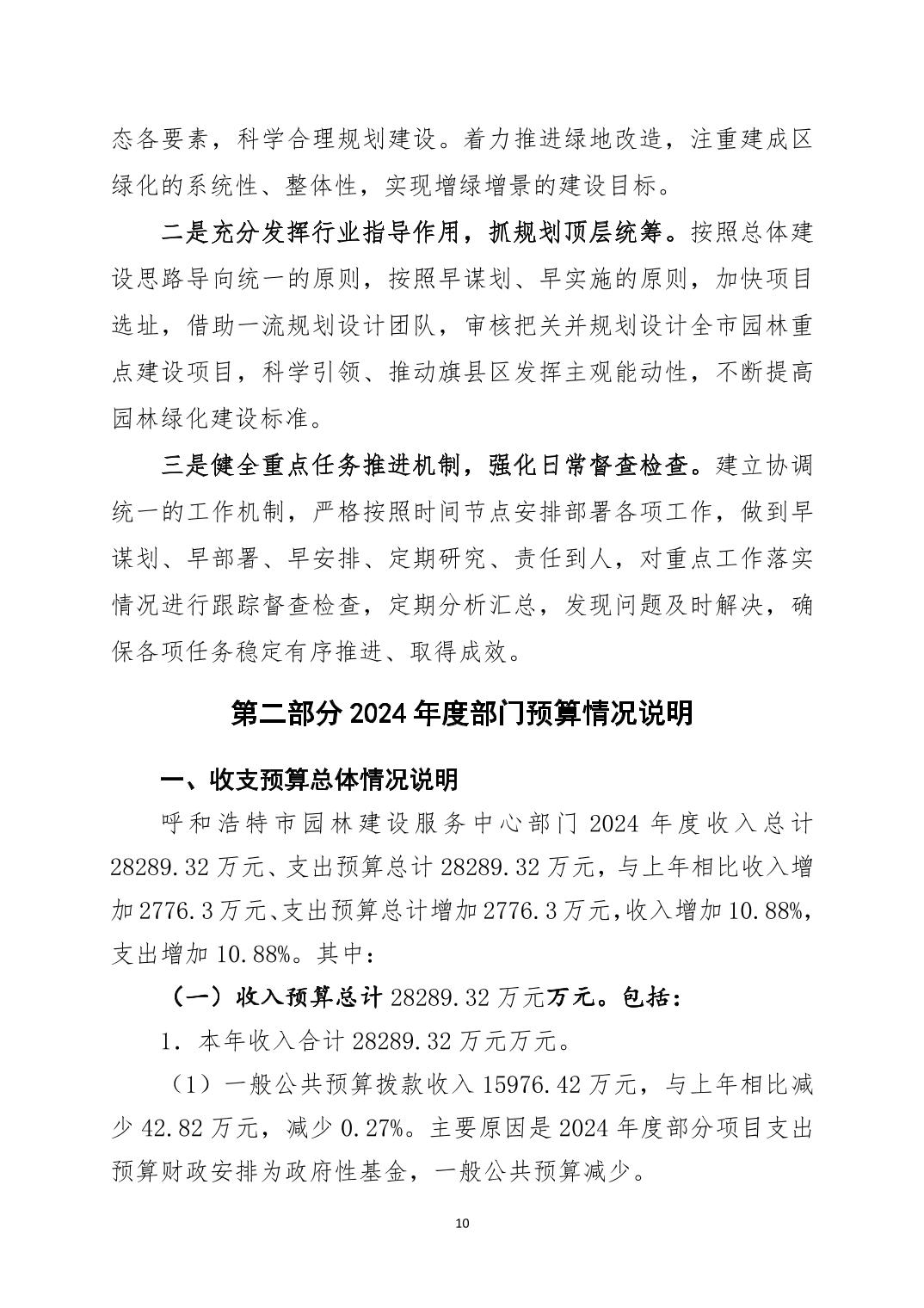 呼和浩特市2024年度呼和浩特市园林建设服务中心部门预算公开报告