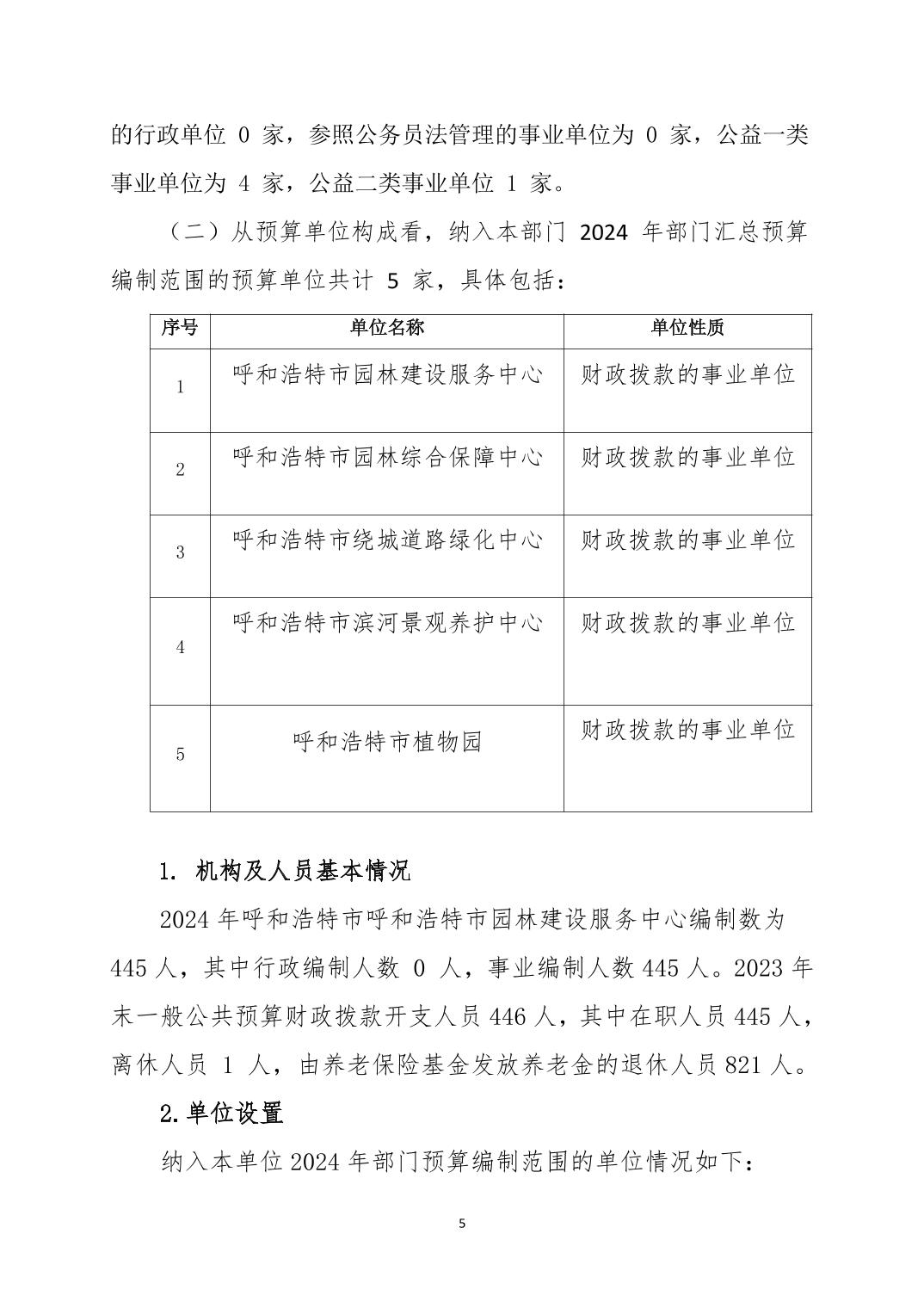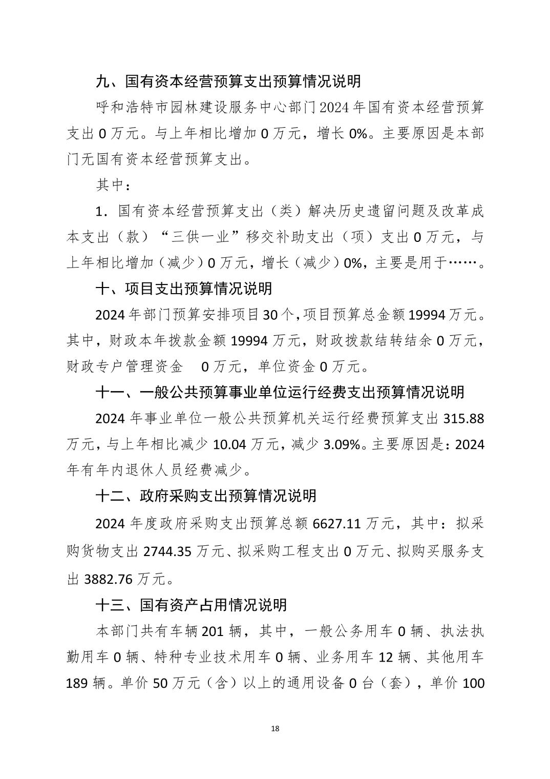 呼和浩特市2024年度呼和浩特市园林建设服务中心部门预算公开报告